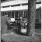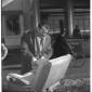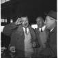 Romano Mussolini, colto all'aeroporto di Ciampino, parla con alcuni conoscenti. Piano medio