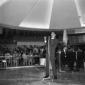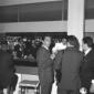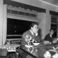 Becaud conversa con una donna (forse la moglie) all'aeroporto