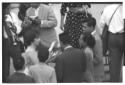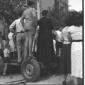 Vittorio De Sica, Gina Lollobrigida (di spalle) ed altri membri della troupe a Montecelio durante le riprese del film Anna di Brooklyn - piano americano