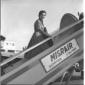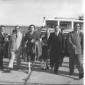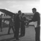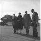 Un uomo ripreso di spalle mentre stringe la mano ad una persona sulla pista dell'aeroporto di Ciampino, Campo medio