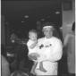 Una crocerossina e una donna trasportano un neonato in una cassa all'interno della stazione aeroportuale di Ciampino. Totale-campo medio