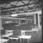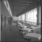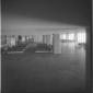 Veduta in prospettiva di un'ampia e lunga sala d'attesa dell'aerostazione di Fiumicino. Campo lungo
