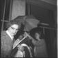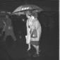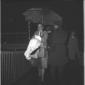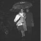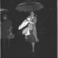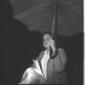 Rebecca Welles cammina sulla pista di Ciampino proteggendosi con un ombrello della SAS; totale