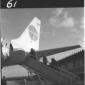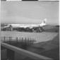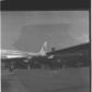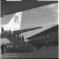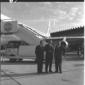 Due uomini ripresi sulla pista dell'aereoporto di Fiumicino, con sullo sfondo un aereo PAA - campo medio