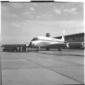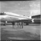 Due uomini ripresi sulla pista dell'aereoporto di Fiumicino, con sullo sfondo un aereo PAA - campo medio