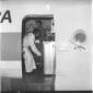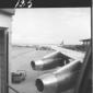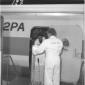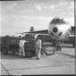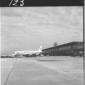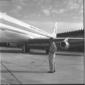 Due uomini ripresi sulla pista dell'aereoporto di Fiumicino, con sullo sfondo un aereo PAA - campo medio