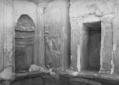 Parete interna di tomba con nicchie per le urne cinerarie e absidiola dipinta con motivo di pesce. Particolare
