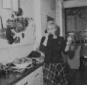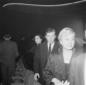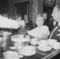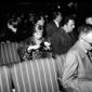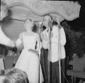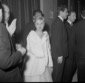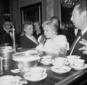 Giulietta Masina conversa con un uomo vicino al bancone dell'Aeroporto di Ciampino