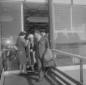 Enzo Merolle cammina con la moglie e altre persone all'interno dell'aeroporto di Fiumicino; campo medio