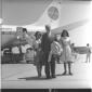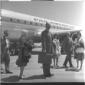 Richardson (?) ripreso dal basso mentre scende dall'aereo della Paa seguito dalla moglie - campo medio
