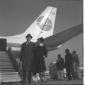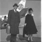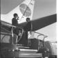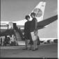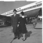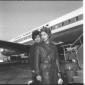 La signora Mara (?) con la figlia sulla pista dell'aeroporto di Fiumicino, alle loro spalle un aereo della Pan Am - totale