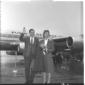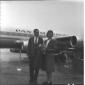 I signori Williams Robinson (?) sulla pista di Fiumicino, alle loro spalle un aereo della Pan Am - piano medio