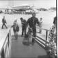 Charlton Heston accoglie all'aeroporto di Fiumicino la moglie e figli