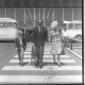 Charlton Heston sulla pista accoglie a braccia aperte la figlia Holly in braccio ad un uomo - piano americano