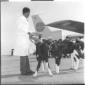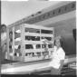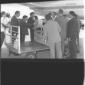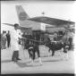 Dei fotografi e dei cameramen riprendono un vitellino in una gabbia che viene spinta all'interno di un aereo della PAA - campo medio